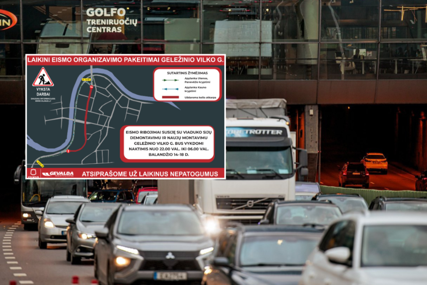 Balandžio 14–18 d. nuo 22 val. iki 6 val. bus uždaroma Geležinio Vilko g. dalis nuo Pakalnės g. iki Lukiškių g. Eismas minėtu laiku bus nukreipiamas A. Goštauto gatve: