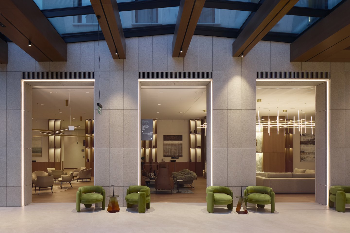 Kadangi AC by Marriott viešbučiai turi savo tvirtą prekinį įvaizdį, nuo kurio negalima pabėgti, kurdami interjerą tokioje jautrioje vietoje siekėme apjungti istoriją ir modernią AC Hotel eleganciją.