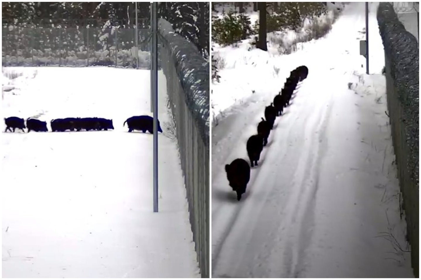 Antradienį VSAT Varėnos pasienio rinktinės Kabelių pasienio užkardos pareigūnai per vaizdo stebėjimo sistemą, skirtą kontroliuoti sieną su Baltarusija, pastebėjo iš miško išeinantį būrį šernų.