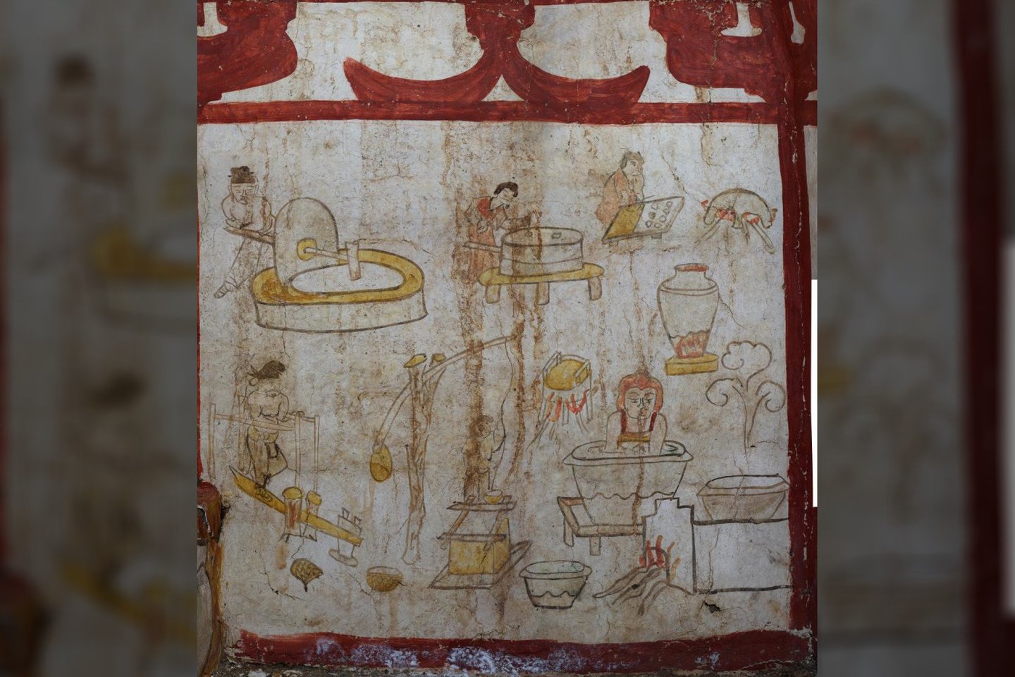 V. Xiongas sako, kad ant sienų nutapytos scenos yra „niekada anksčiau nematytos“ Tangų dinastijos laikotarpio buities pavyzdžiai, o kadangi figūros greičiausiai yra kapo savininkai, jos tikriausiai vaizduoja jų kasdienio gyvenimo smulkmenas. Tačiau vakariečio buvimas prideda šiek tiek paslaptingumo kitaip ramiai gyvenusių seniai mirusių vyro ir moters gyvenimui, rašo „Popular Mechanics“.