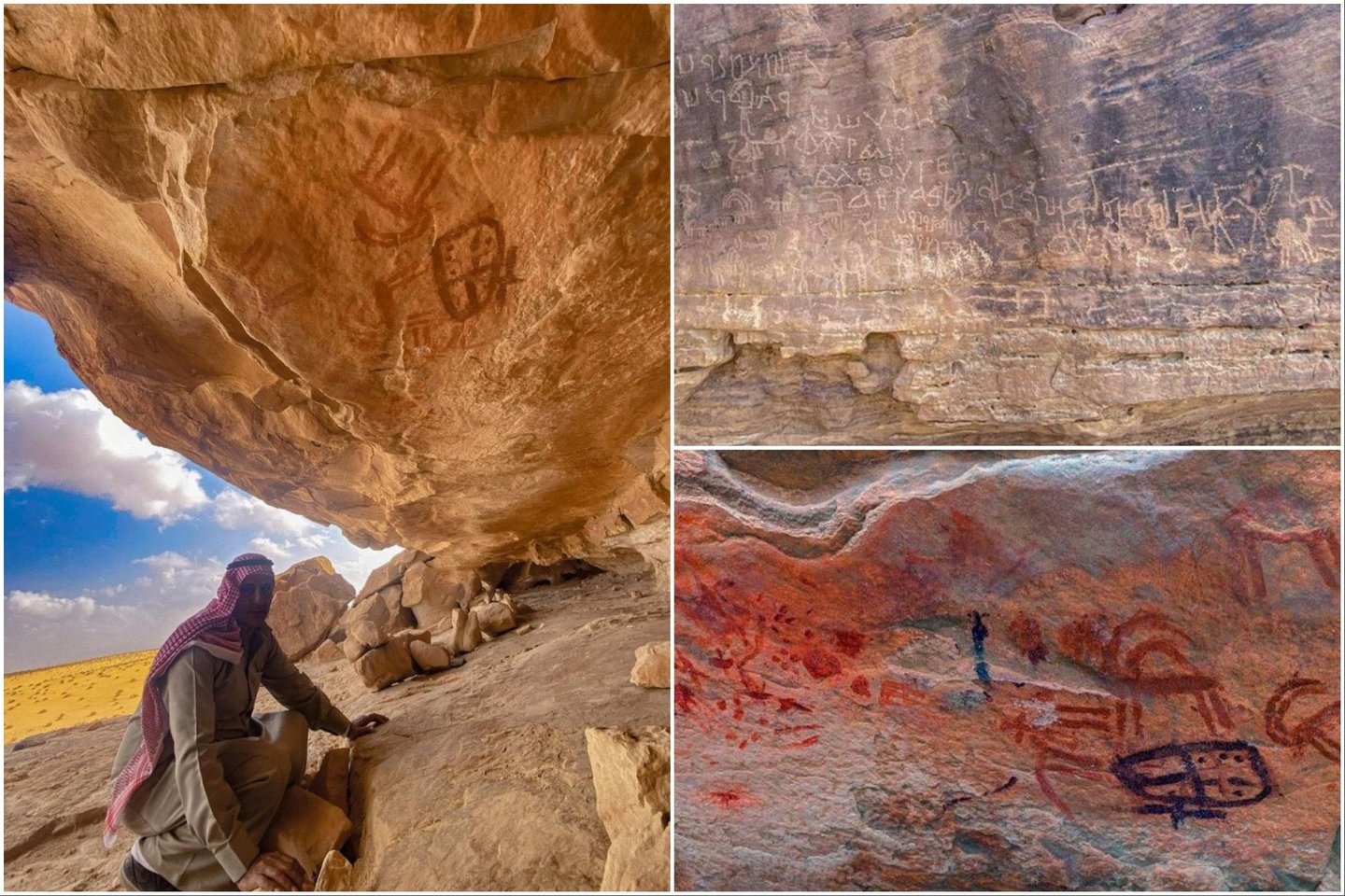 Pasak mokslininko, iki šiol paskelbtose nuotraukose matyti, panašu, piešiniai iš vėlyvosios antikos, galbūt viduramžių laikotarpio – arba maždaug nuo 500 iki 1500 m. e. m. Jis pažymi, kad šiame uolų mene yra vaizduojami kupranugariai, žmonės ir nabatėjų užrašai.