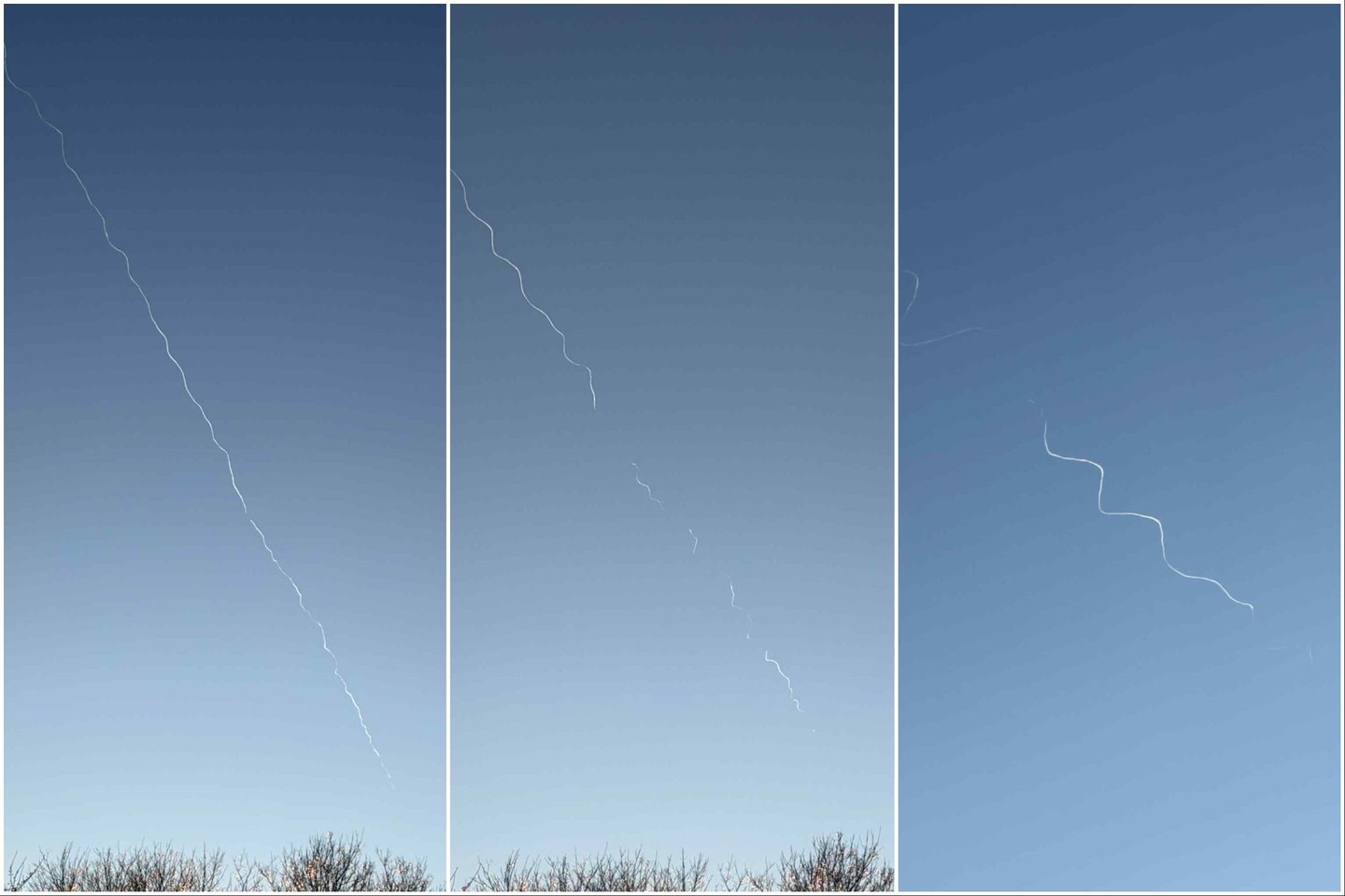 Daugumoje nuotraukų užfiksuota vingiuojanti dūmų juosta, besidriekianti danguje. Keliomis tokių nuotraukų serijomis su portalu Lrytas sutiko pasidalinti vilniečiai Martynas Stanionis ir ir Eglė D.