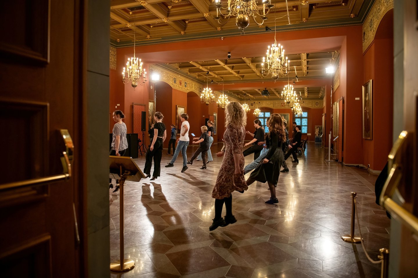 Atkurtų istorinių interjerų ekspozicijoje nuo 10 val. visą dieną bus rodomi Europos šokio istorijai skirti vaizdo įrašai. Vienuolika trumpų vaizdo pasakojimų lankytojus supažindins su šios istorijos raida nuo XV iki XXI amžiaus.