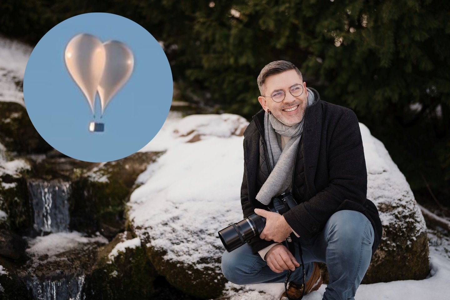 Drauge jis paviešino vaizdo įrašą, kuriame matyti, kaip du oro balionai gabena krovinį.