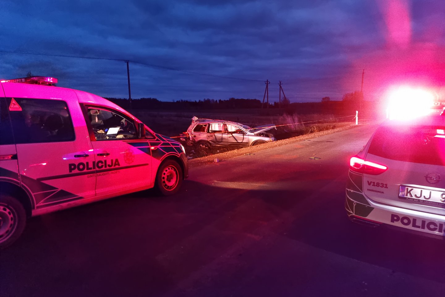 Pasak pareigūnų, „Ford“ po smūgio atsitrenkė į šalikelėje sustojusį automobilį „Renault“, kuriame sėdėjo 58 metų vairuotojas.