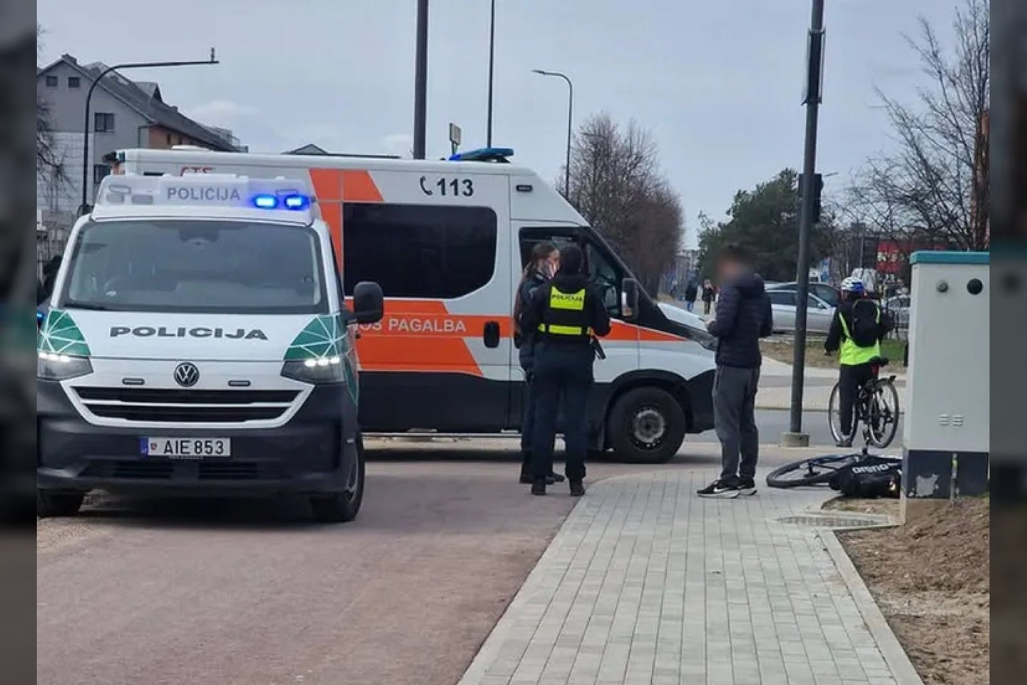 Jo atsiųstoje nuotraukoje matyti ant šaligatvio gulintis dviratis. Tikėtina, kad sužalojimus patyrė jo vairuotojas.