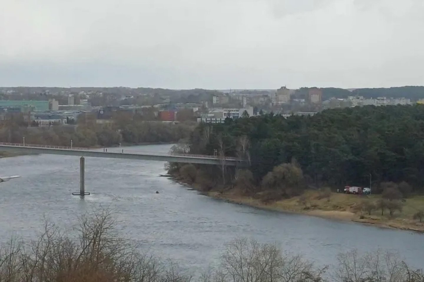 Skaitytojos atsiųstoje nuotraukoje buvo matyti, kad prie Panemunės šile esančio tilto yra atvykę ugniagesiai gelbėtojai, taip pat ir policijos ekipažas.