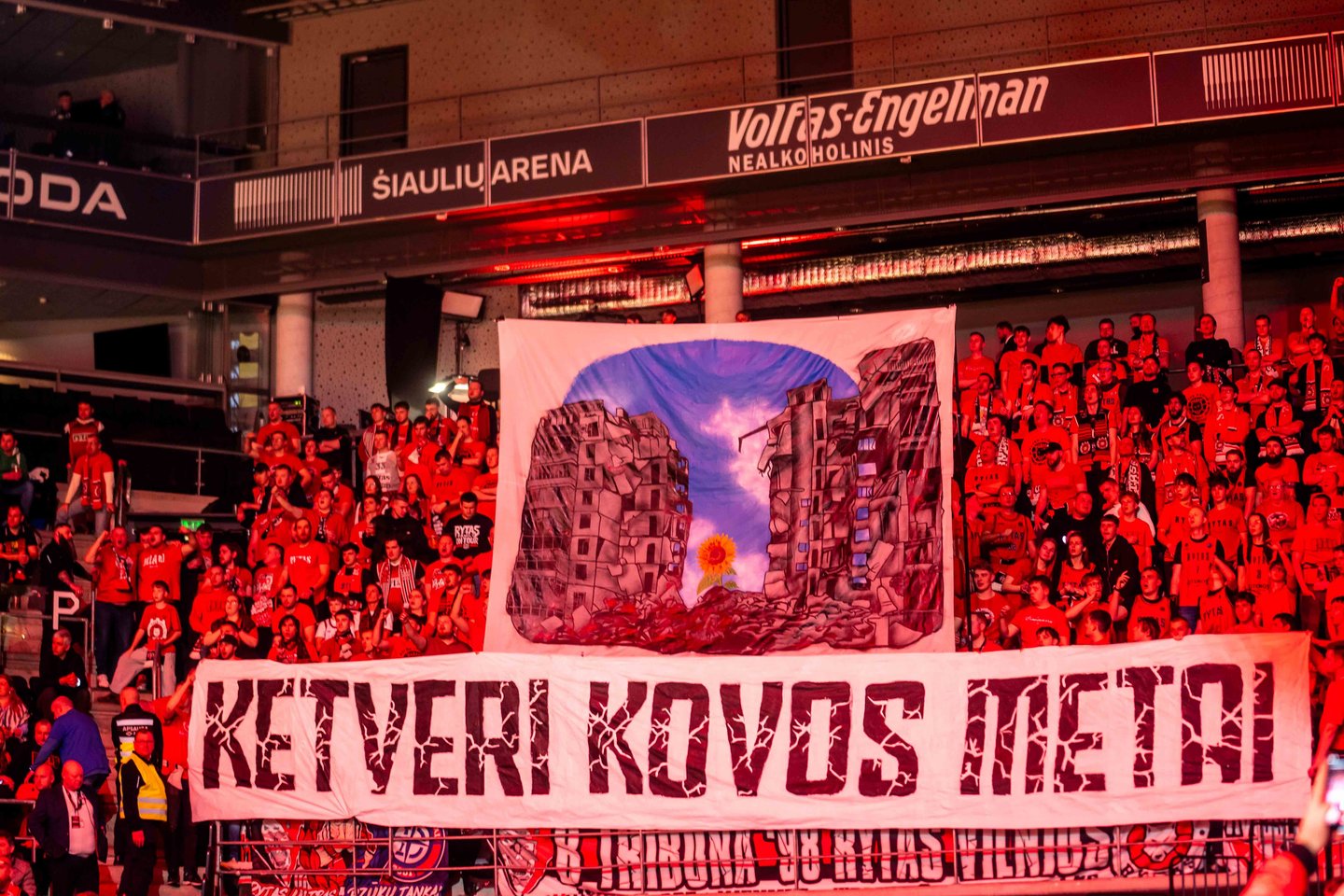 Kai kurie krepšinio sirgaliai „Žalgirio“ ir „Ryto“ dvikovas prilygina karui, tačiau pastarosios komandos aistruoliai „B tribūna“ priminė, kad karas šiuo metu vyksta Ukrainoje.