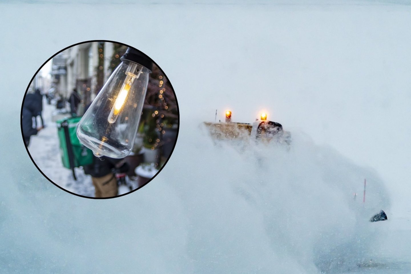 Dėl stipraus vėjo ir sunkaus, drėgno sniego virto medžiai, buvo apgadinti elektros perdavimo laidai.