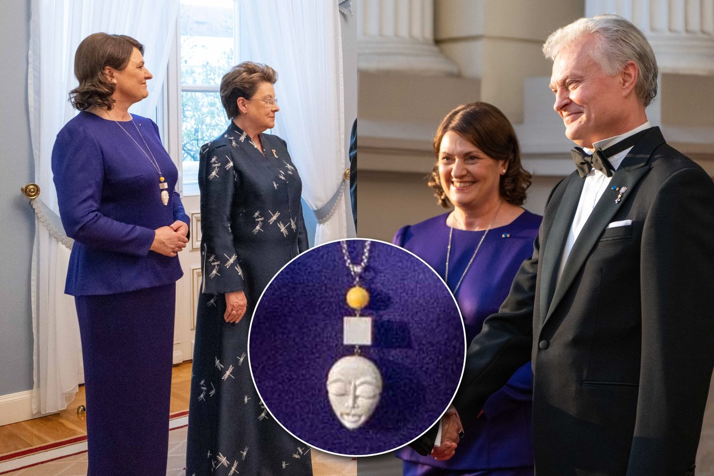 Estijos pirmoji ponia vilkėjo ilgą suknelę su laumžirgių motyvais, tačiau savo įvaizdžiu stebino ir Lietuvos pirmoji ponia Diana Nausėdienė.