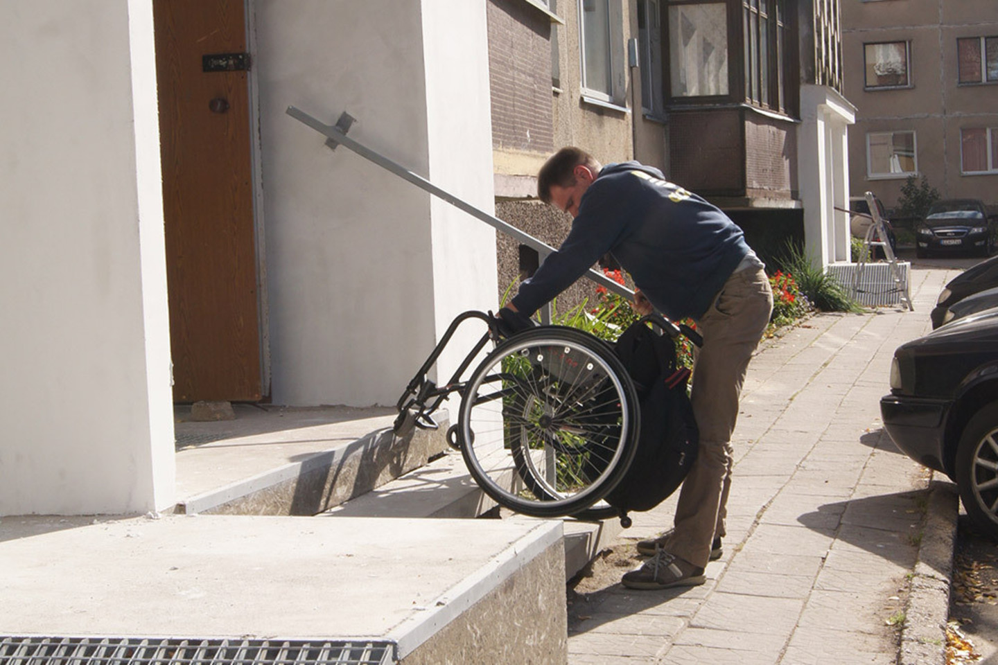 O kada renovuojant daugiabučius valstybės parama įrengti specialius pritaikymus, atitinkančius žmonių su negalia poreikius, yra neteikiama? Namo renovacijos projekte tokie pritaikymai turi būti numatyti, jei tik techniškai įmanoma juos įrengti. Pavyzdžiui, prie kai kurių sovietmečio namų Vilniaus miesto Karoliniškių, Lazdynų mikrorajonuose įrengti išorinius pandusus vargu ar pavyktų: įėjimai yra aukštai, reikia pakilti stačiais laiptais. Prie namų driekiasi siauri šaligatviai ir čia pat – važiuojamoji kelio dalis arba automobilių stovėjimo aikštelės. Įrengus pandusą prie tokio namo, jis būtų per status, todėl juo būtų sunku arba neįmanoma naudotis.