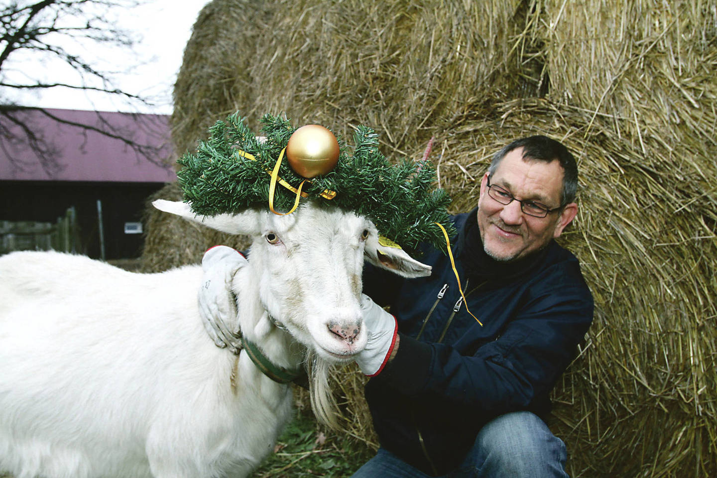 Artėjant Naujiesiems J.Gricius namus išpuošė eglišakėmis. Po švenčių kalėdinės puošmenos taip pat taps ožkų skanumynais.