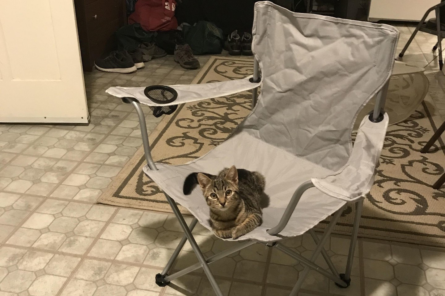 Paaiškėjo, kad kačiukas neturėjo poodinės mikroschemos, bet turėjo kirmėlių ir blusų. Taigi buvo paskiepytas ir jam suduoti vaistai.
