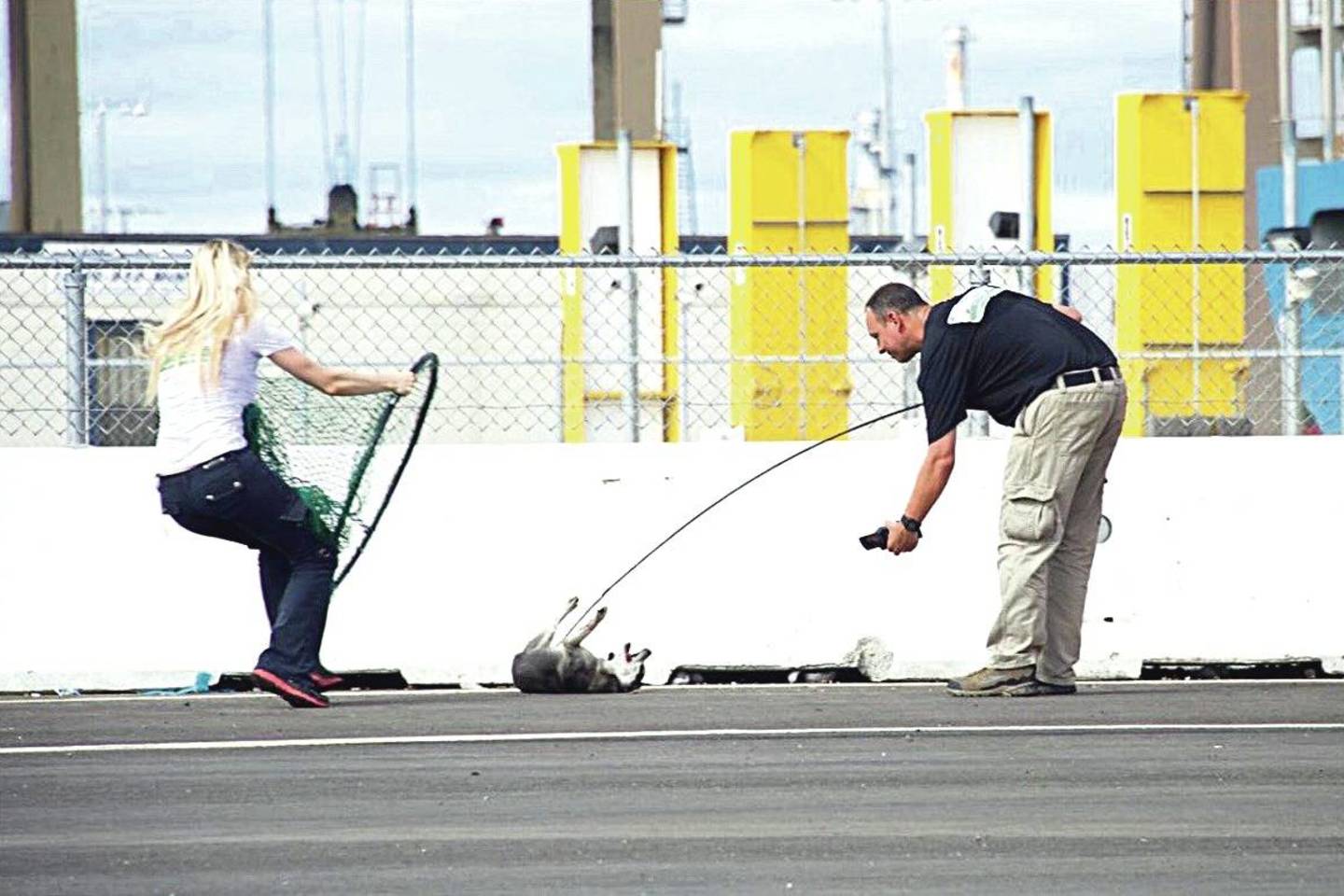 Sukvietėme aplinkinių namų gyventojus, susirinko gal apie 20 žmonių. Teritoriją apsupome tinklais – buvome jų atsivežę net keletą dėžių – ir tokiu būdu gyvūną pagavome per 37 sekundes.