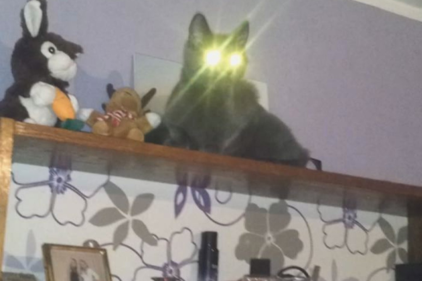 Žiūrovė nufilmavo itin skaisčiai šviečiančias savo katės akis. Vaizdo įraše keturkojė šokinėja nuo baldo ant baldo, o akys spindi itin ryškiai.