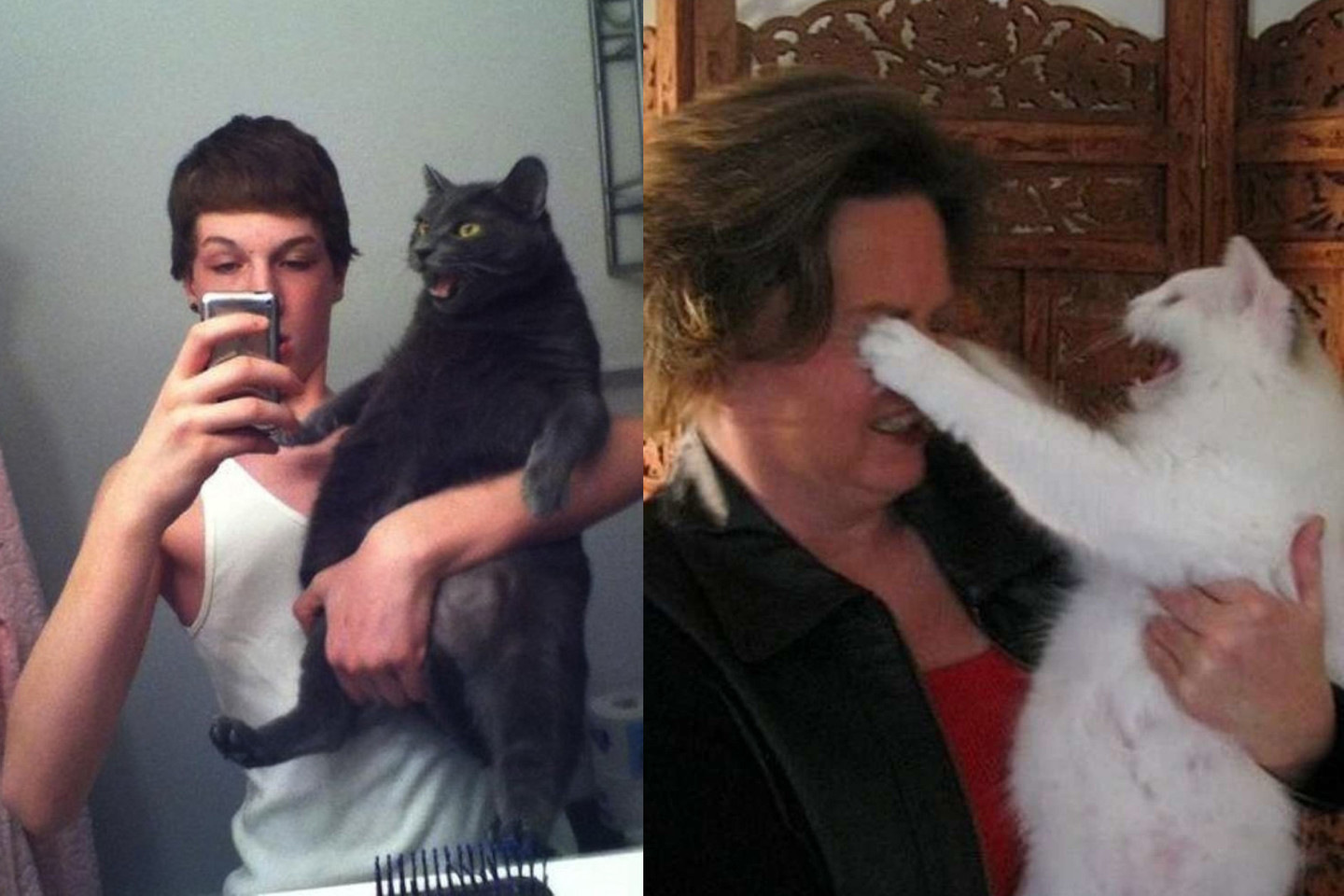 Nuotaikingoje galerijoje užfiksuota, kaip katės įvairiais būdais bando išvengti kameros blykstės ir demonstruoja savo nepasitenkinimą šeimininkų elgesiu.