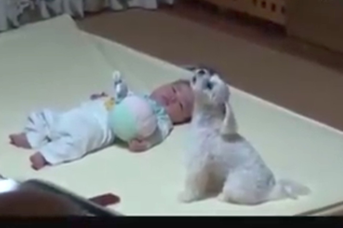 Istorijos apie keturkojus, kurie guodžia savo šeimininkus ir jų vaikus šiems verkiant, jau nestebina. Ši istorija kiek kitokia. Vaizdo įraše užfiksuota, kaip verkiant kūdikiui šunelis kaukia. Šuo tarsi verkia garsiau už kūdikį, lyg mokydamas vaiką, kaip iš tiesų reikia verkti, norint atkreipti aplinkinių dėmesį. Tačiau kaukiančio gyvūno balsas buvo toks įdomus, kad mažylis net užmiršo, dėl ko verkė ir visą dėmesį skyrė savo keturkojo draugo pasirodymui.
