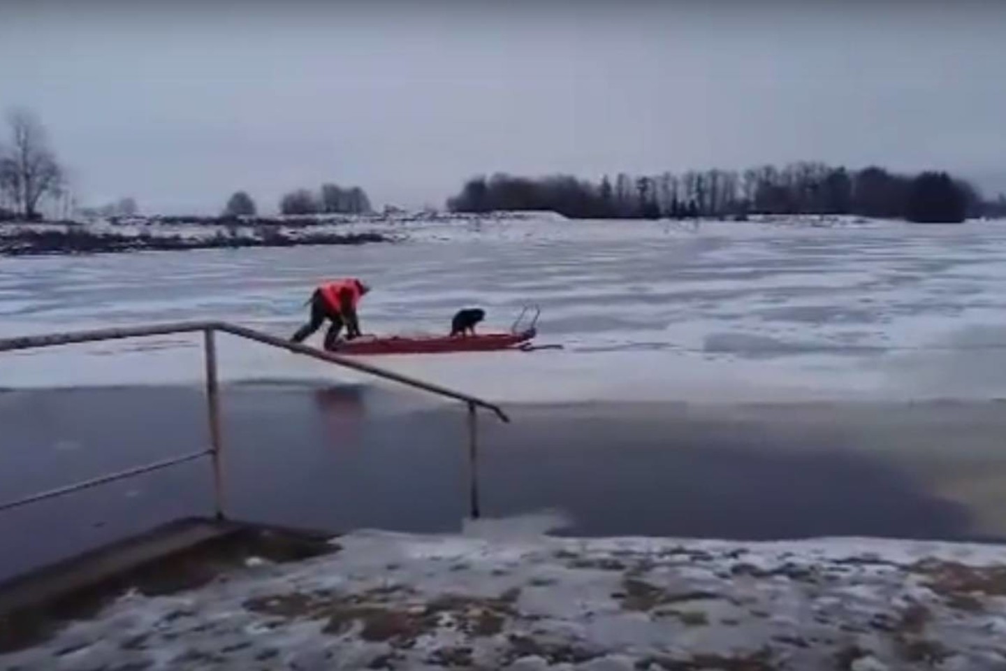 Belaukiant ugniagesių susirinko daugiau žmonių, matėsi, kad šuniukas sušalęs ir išsigandęs, tad kai kurie pasisakė, jog reikia patiems eiti link jo. Drąsuolius sulaikė šalia buvę žmonės – ledas buvo itin plonas.