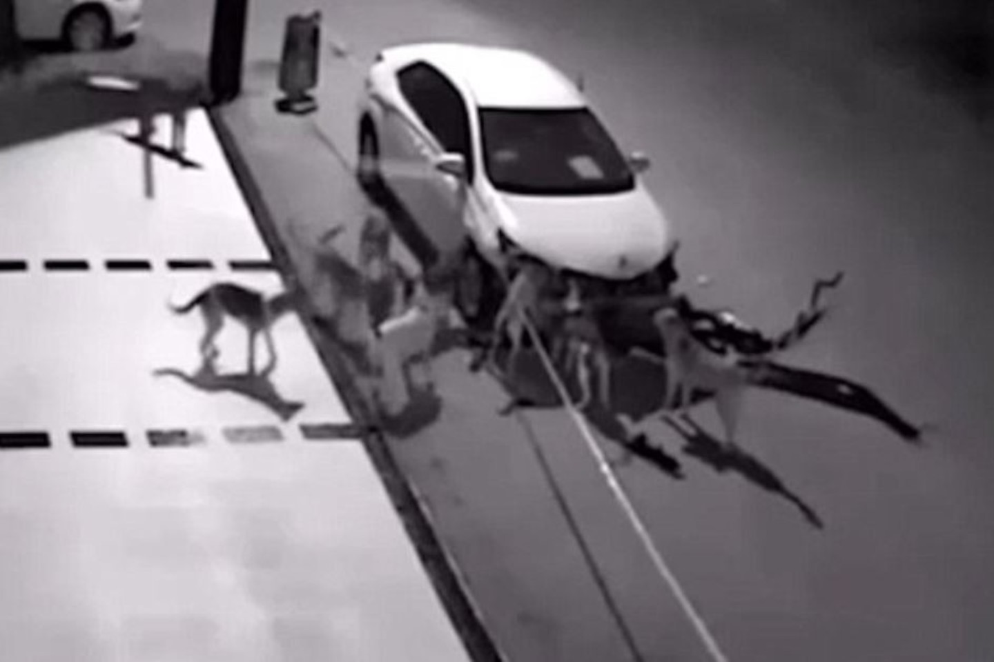 Tikėtina, kad benamiai šunys užuodė po automobilio kapotu pasislėpusią katę, todėl darė viską, kad tik ją iš ten iškrapštytų.