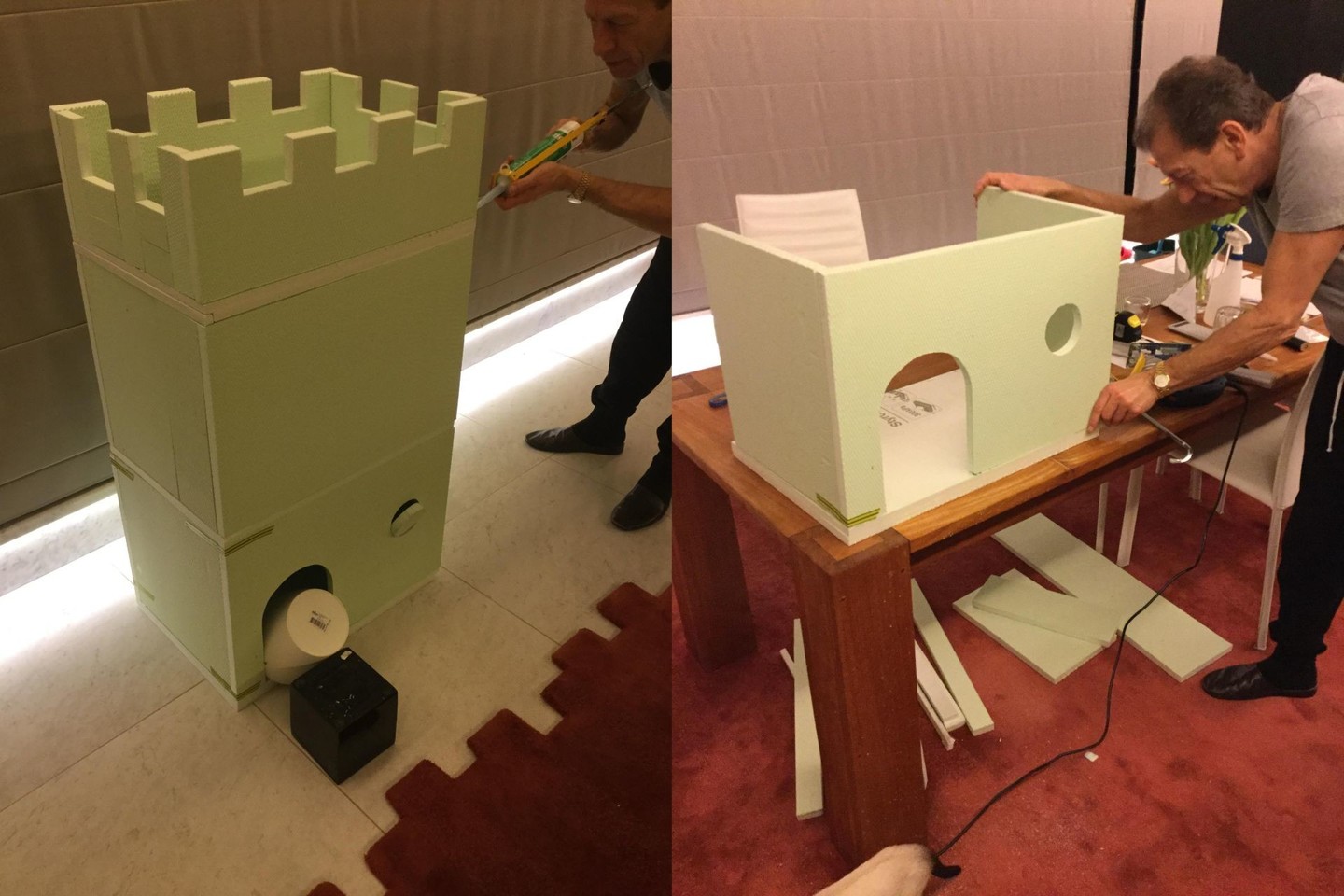 Kadangi pilies bazė taip pat buvo iš polistireninio putplasčio, anot šeimininko, pilis tapo šilta ir lengvai bet kur perkeliama.