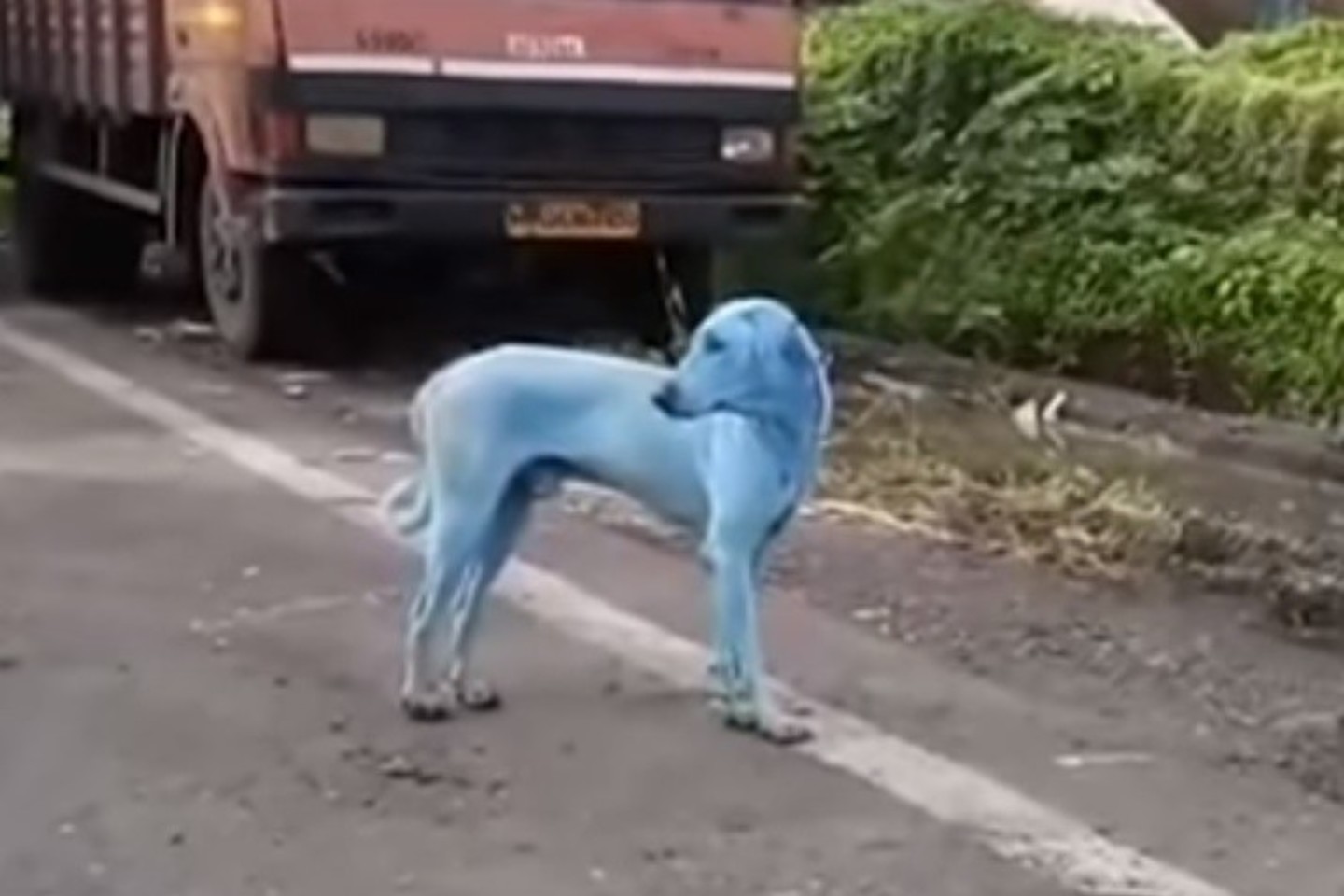 Šunys būna pačių įvairiausių spalvų, tačiau pamatyti juos mėlynus tikrai nėra įprasta. Visgi, suvesti galus nėra taip jau sunku. Penki benamiai šunys buvo pastebėti industrinėje Naujojo Mumbajaus dalyje, netoli upės. Tai gali reikšti tik vieną – šunys išsimaudė upėje, kurioje yra kažkokių chemikalų, kurie nudažė jų kailį.
