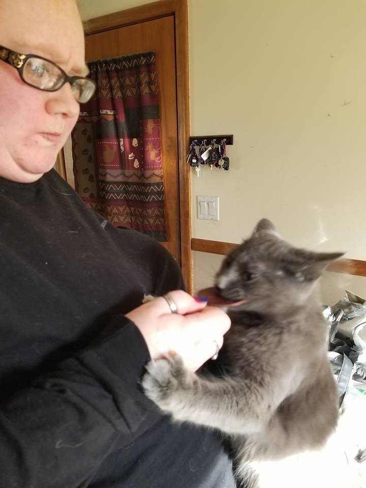Pilkos spalvos katinas Neganas buvo priglaustas liepą. Dabar jis gyvena su dar keliais šunimis ir katėmis. Anot šeimininko, augintinis yra labai mielas, puikiai sutaria su žmonėmis ir kitais gyvūnais, bet turi vieną bjaurų bruožą – vogti maistą.