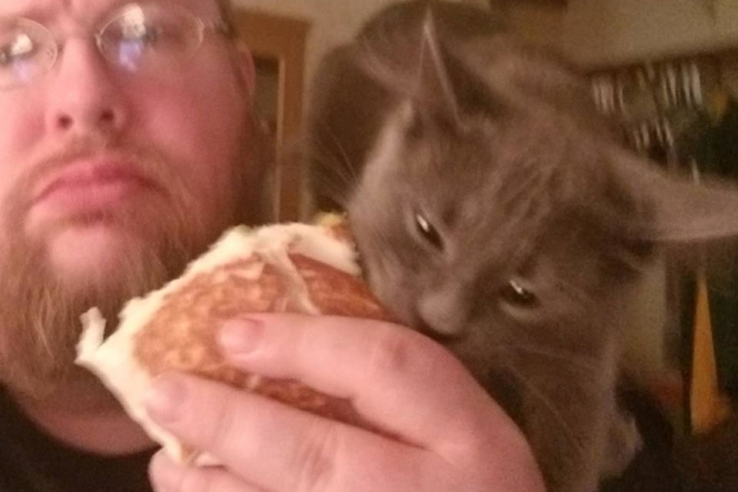 Juokas pro ašaras – įžūlaus katino reakcija į valgantį šeimininką