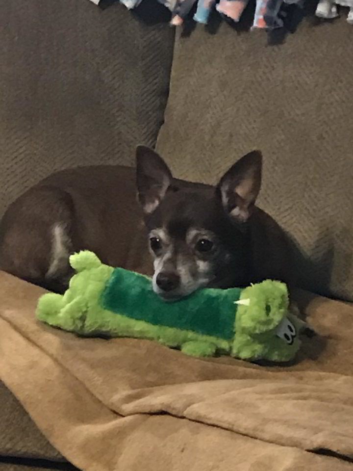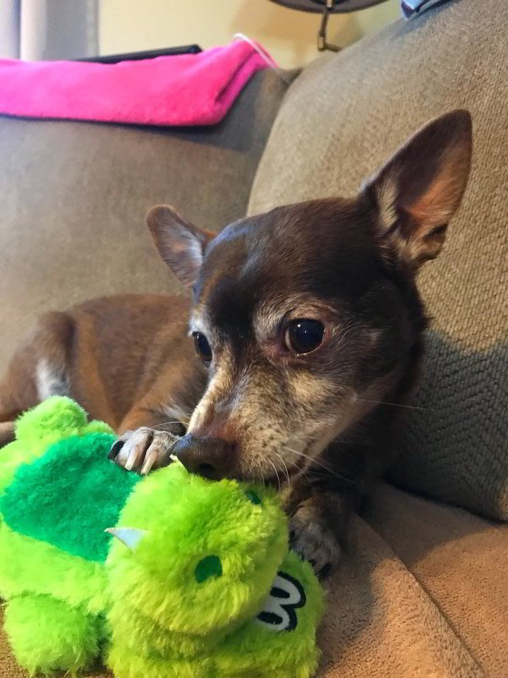 Sausį šio 12 metų amžiaus šunelio, vardu Jaxas, šeimininkė Kelli Brown socialiniame tinkle „Twitter“ parašė, kad augintinis žaisdavo tik su vieninteliu žaislu – žaliu drakonu. Deja, tokį žaislą gamintojai nustojo gaminti.