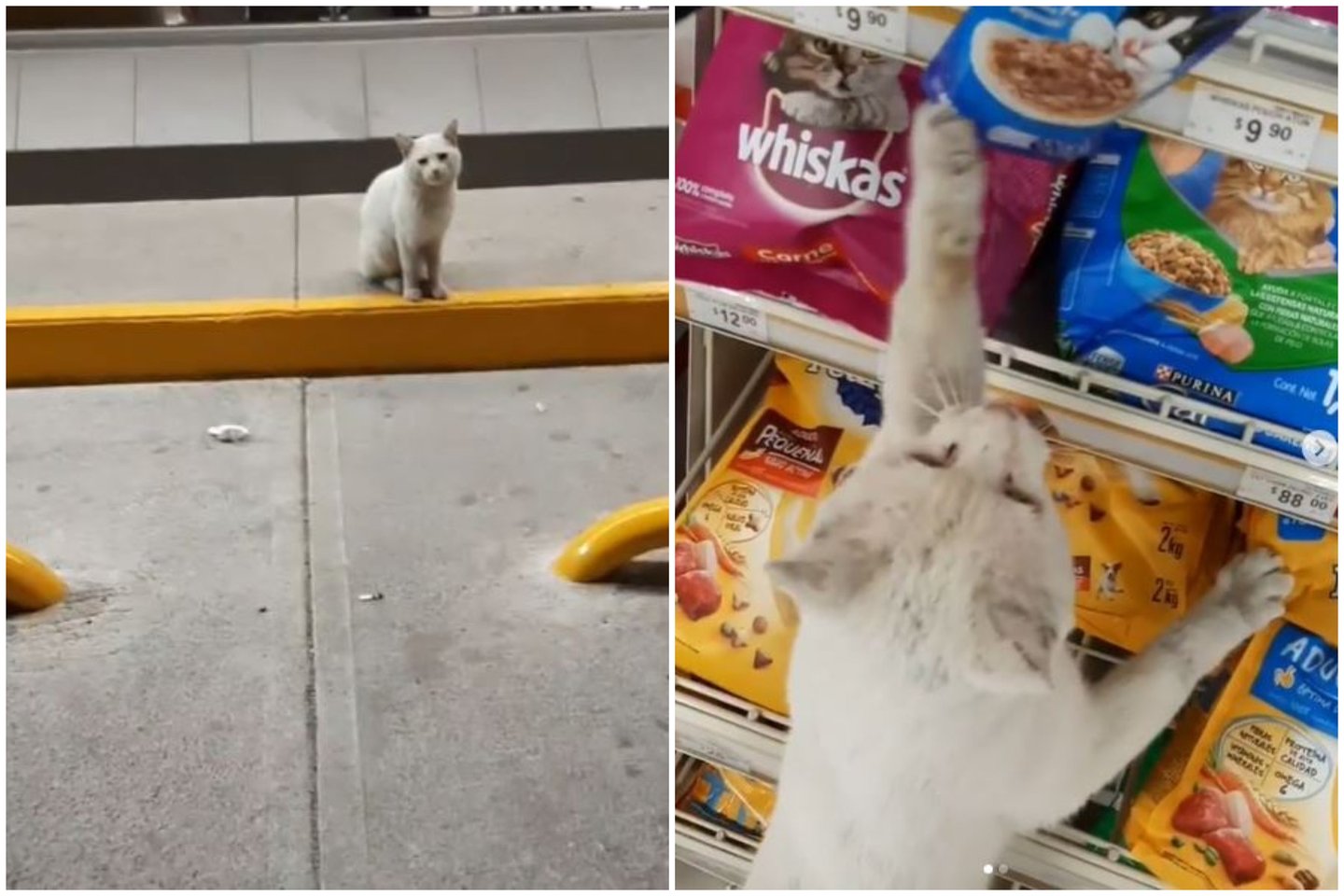 Moteris nupirko maisto, jį pamaitino ir nuėjo namo. Kitą kartą jai užėjus į tą patį prekybos centrą, katinas sėdėjo prie savo maisto lentynos, laukdamas „kačių mylėtojo“, kuris jam padės ir pamaitins.