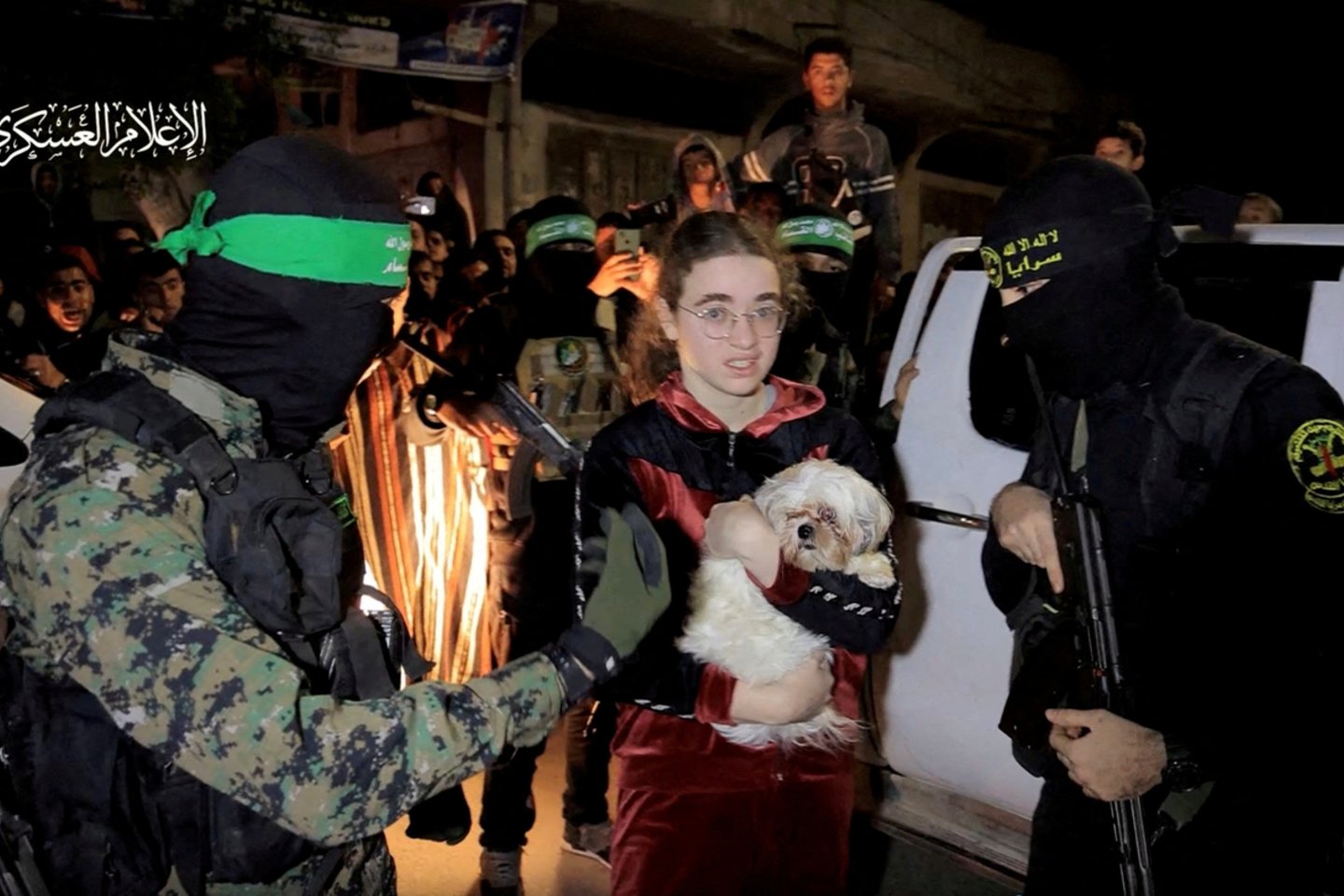 „Tada jie nuvežė juos į tunelius... ji visą laiką šunį laikė su savimi. Kai jie išėjo iš tunelio, turėjo lipti kopėčiomis, tuomet „Hamas“ žmonės pastebėjo, kad tai ne lėlė, o gyvas, kvėpuojantis šuo. Kilo nedidelis ginčas, tačiau buvo nuspręsta leisti jai pasilikti šunį“, – sakė jis.