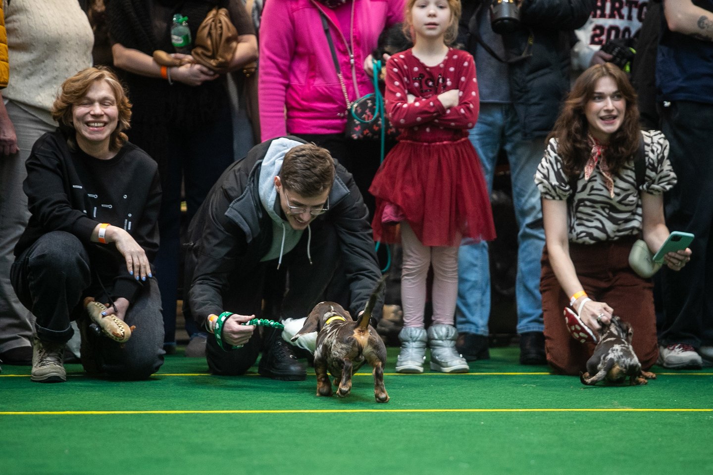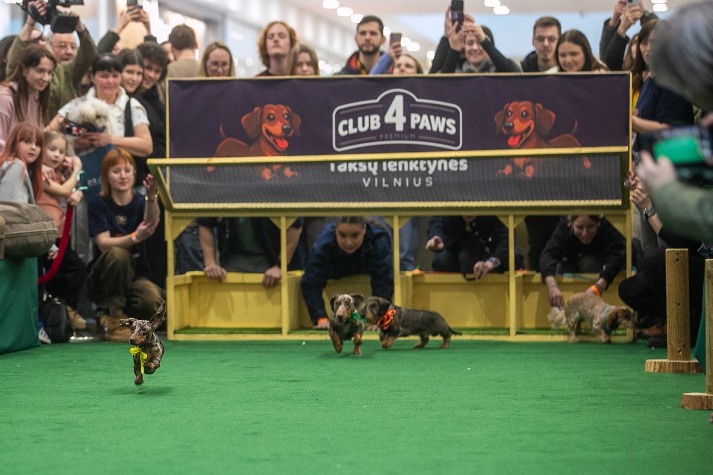 Meilės dieną šunų gerbėjai Vilniaus prekybos centre rinkosi į taksų lenktynes. Taksų gerbėjų laukė net dvi įsimintinos keturkojų rungtys.