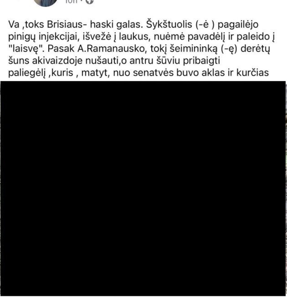 Dar baisiau tai, kad šis asmuo ne tik įvykdė žiaurų nusikaltimą prieš bejėgį gyvūną, bet ir besididžiuodamas bei pats prisipažindamas, paviešino savo veiksmus socialiniame tinkle. Jis viešai rodė duobėje gulintį nužudyto šuns kūną ir ciniškai didžiavosi tuo, ką padarė (pridedamos „Facebook“ sienos ekrano nuotraukos su žudiko postais ir komentarais, kuriuos vėliau pats pašalino).