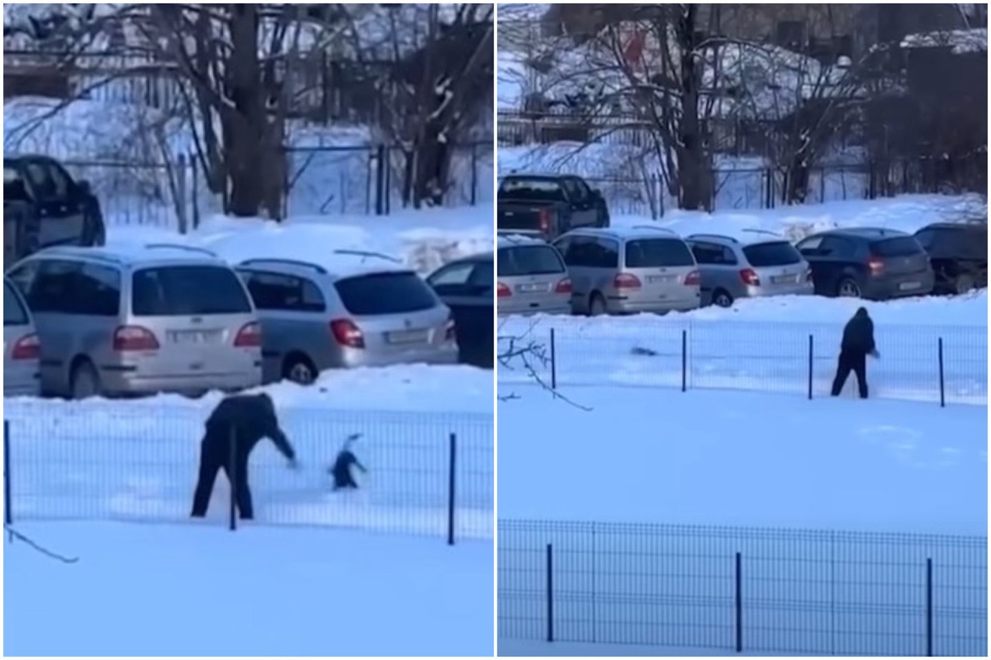 Vaizdo medžiagoje matyti, kaip asmuo trenkia šunį į žemę, o vėliau jį tampo už pavadėlio.