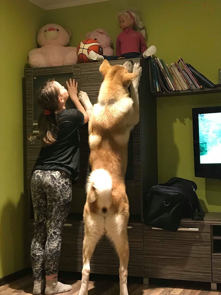„Bosas – pirmasis mūsų šeimos šuo. Dukra Ramilė mudu su vyru Raimondu labai ilgai įkalbinėjo įsigyti keturkojį. Sutikome, tačiau sutarėme, kad tai, kokios veislės jis bus, spręsime mudu su vyru, – pasakoja kėdainietė R. Karalienė. – Ilgokai internete skaitinėjome, tarėmės su šunis jau auginančiais bičiuliais, sprendėme, kokios veislės šuniuko norėtume. Pradžioje svarstėme apie haskį, tačiau gyvename bute, o šios veislės atstovams reikia labai daug judėti. Apsistojome ties japonų akita. Akitukai – ramūs, mažiau judrūs, kantrūs šuniukai.“