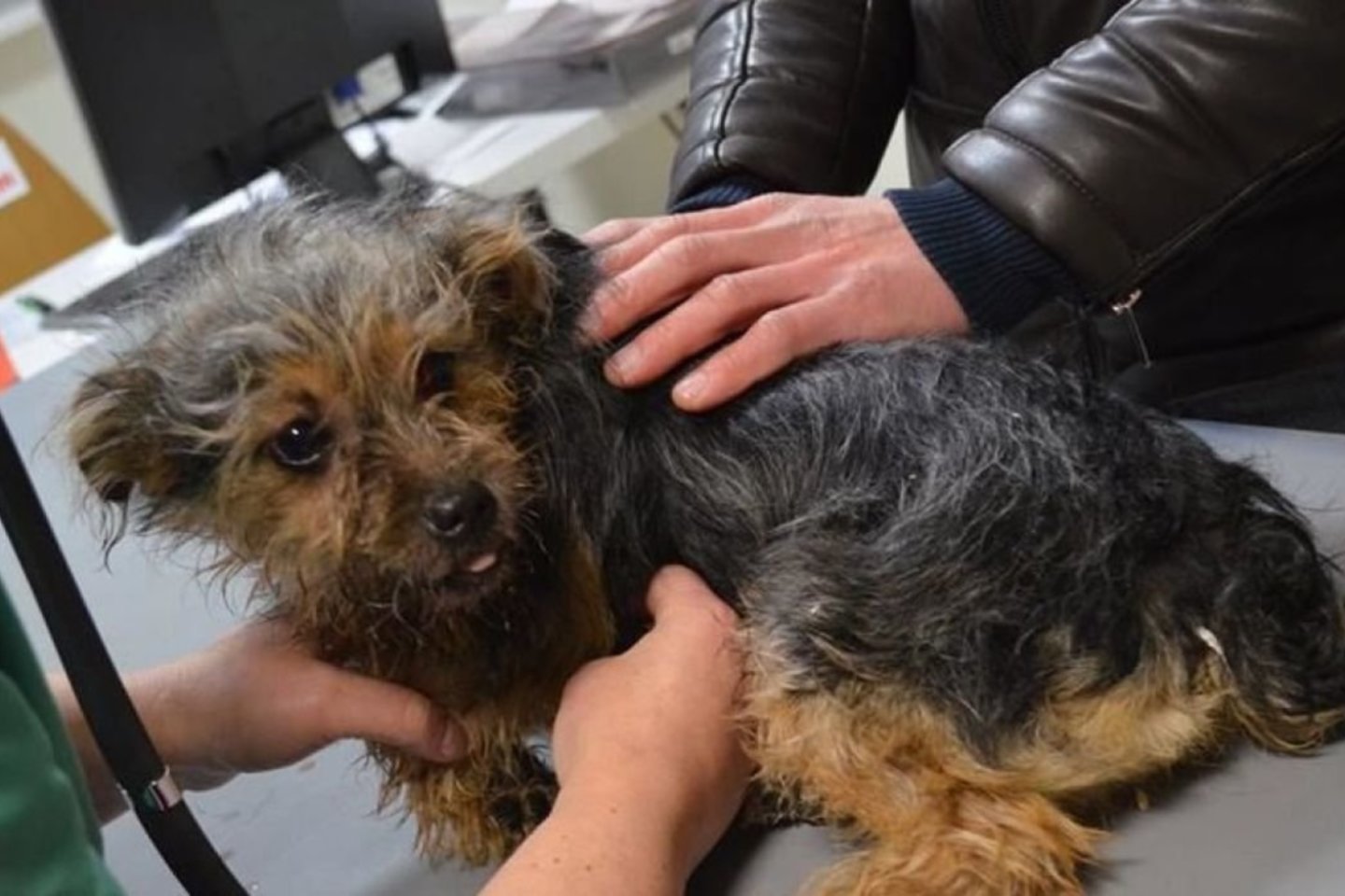 Apžiūrėjus gyvūną paaiškėjo, kad sumušta akis, matosi stipri kraujosruva, stipriai sutrenkta galva, pilvas, šonkauliai, gyvūnas sunkiai kvėpuoja, yra šoko būsenos, vemia krauju. Po apžiūros sulaukėme ir policijos pareigūnų su šuniuko „šeimininke“ veterinarijos klinikoje, šeimininkė buvo atvežta atsisakyti gyvūno raštu“, – dėstė specialistė.