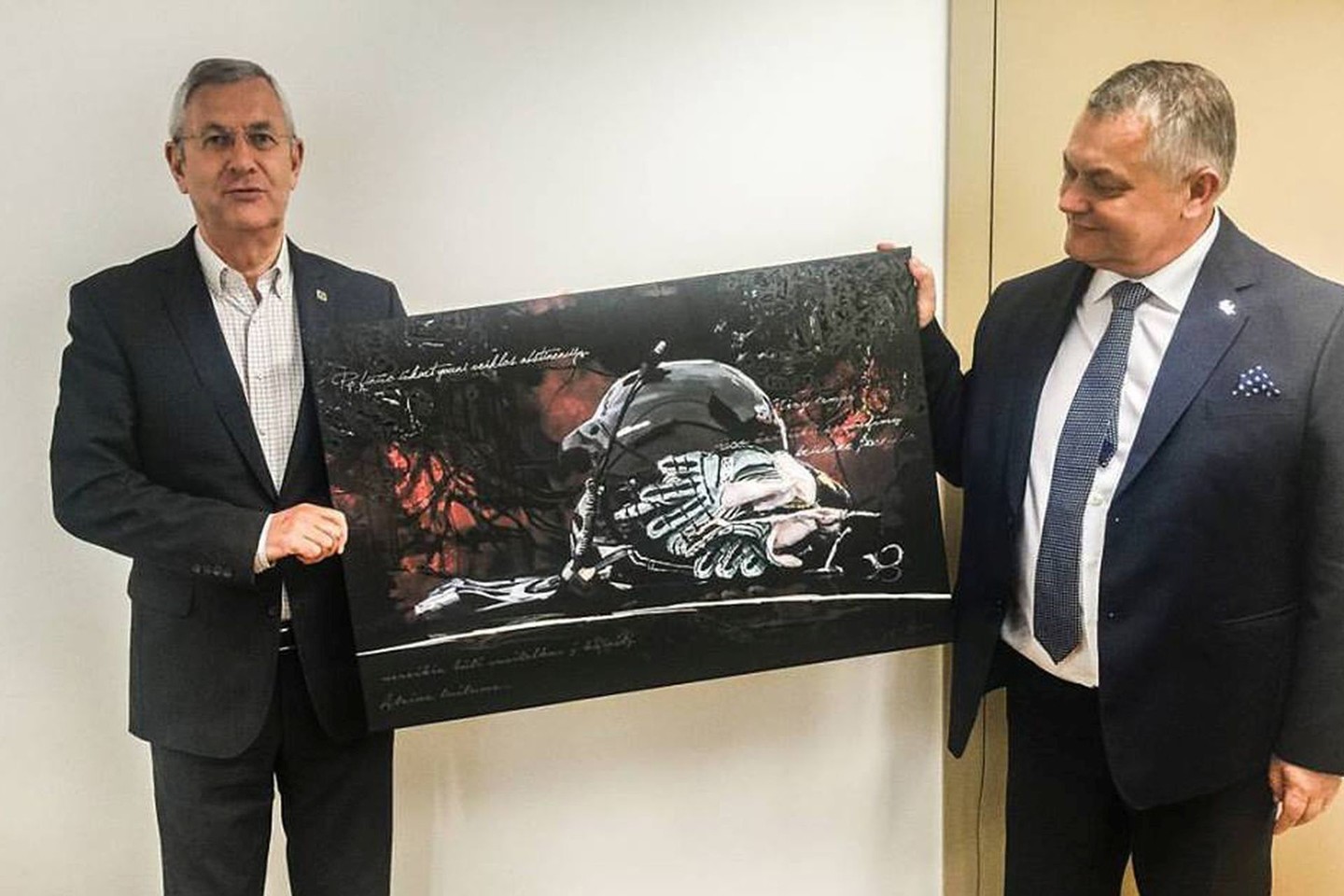 Vizito į PZM metu federacijų atstovai apsikeitė dovanomis, o LASF prezidentas R. Austinskas įteikė Jurgos Anusauskienės paveikslą „Pauzė“.