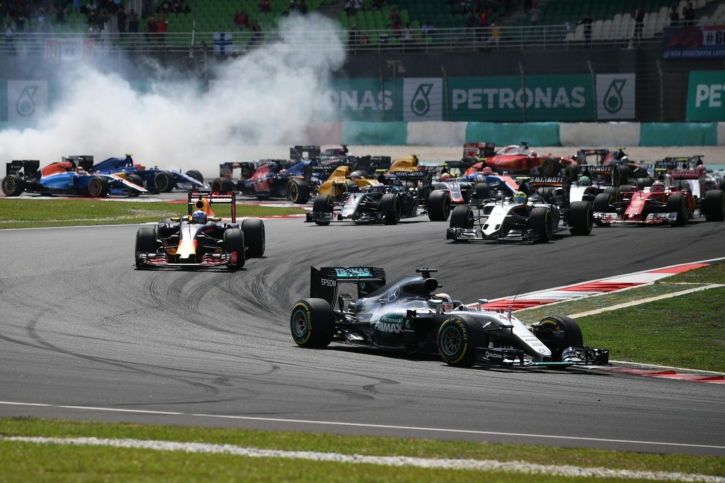 Pirmasis lenktynių posūkis tapo tikra mėsmale. Po kontakto su N. Rosbergu buvo sulaužyta Sebastiano Vettelio „Ferrari“ bolido priekinė važiuoklė. Dėl rimtų pažeidimų vokietis buvo priverstas pasitraukti iš lenktynių.