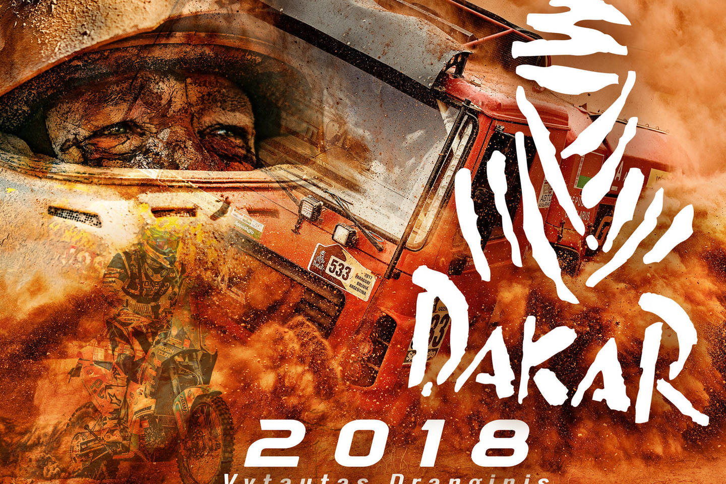 Jo nuotrauka, pažymint Dakaro specifiką, kur svarbus ne tik technikos patikimumas, bet ir žmogaus ištvermė, sumaketuota iš trijų akimirkų: per dulkes lekiančio sunkvežimio, purvino motociklo ir pavargusio lenktynininko veido.