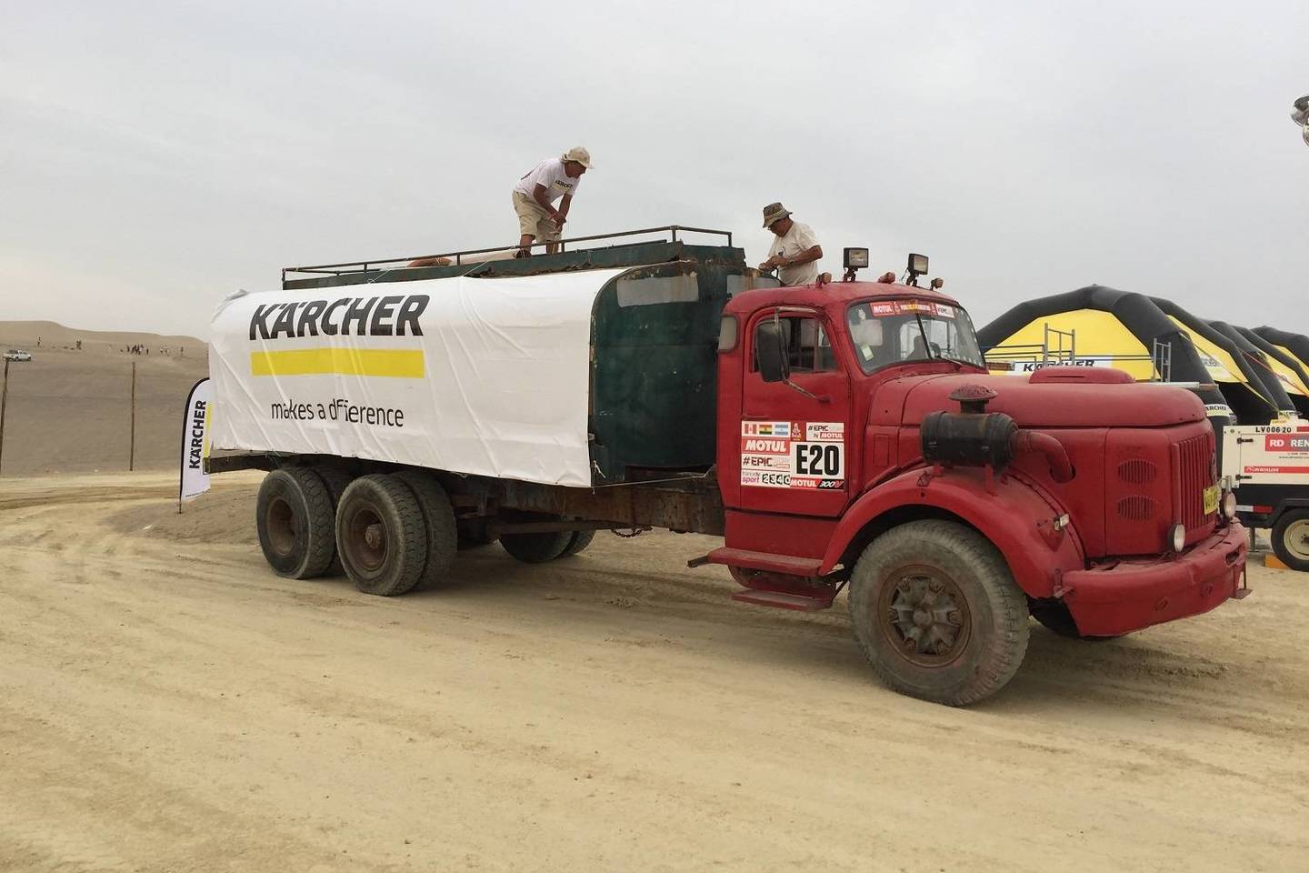 Jie kitaip palengvina čia dalyvių gyvenimą – pripildo komandų techninio aptarnavimo automobilių vandens rezervuarus.