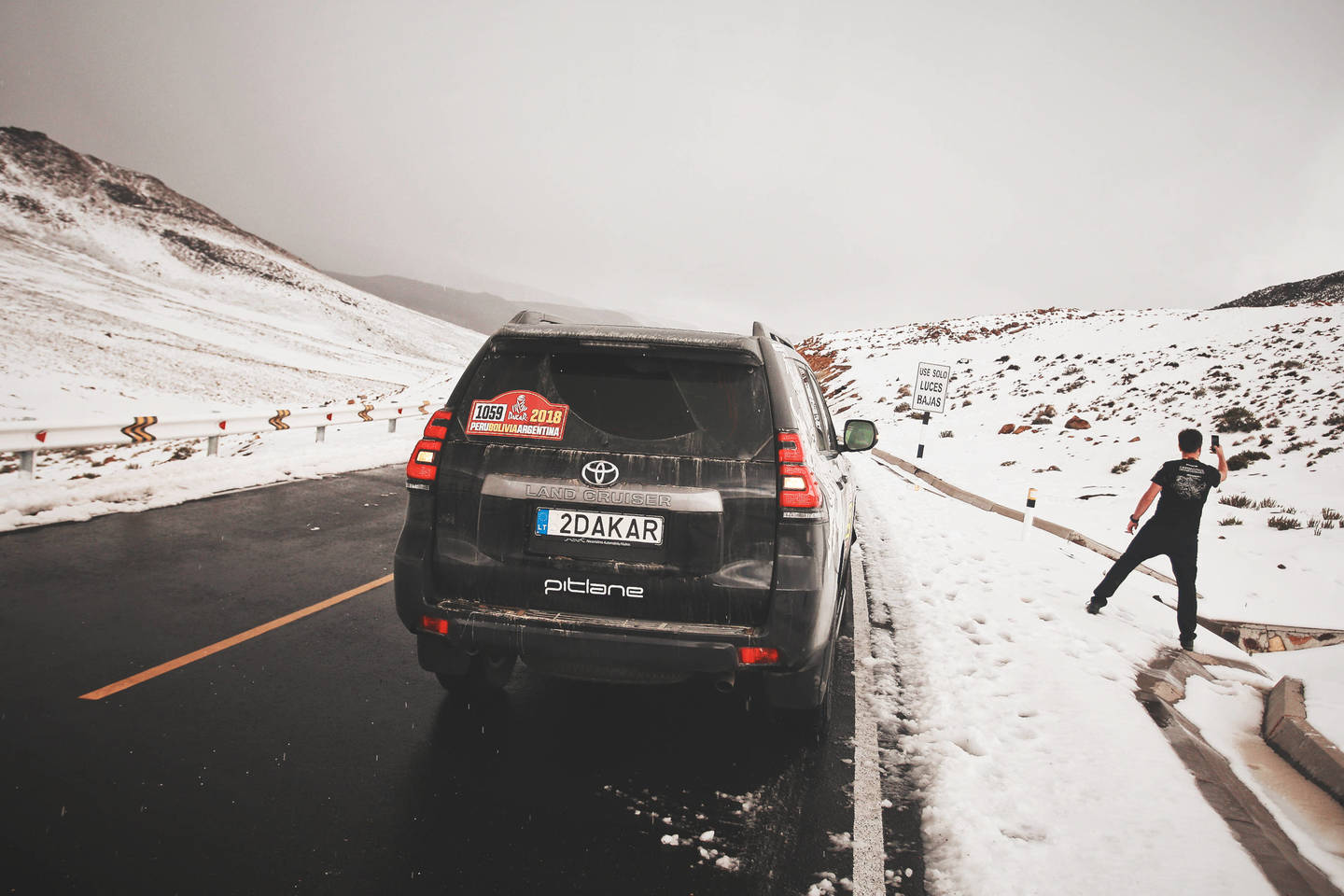 Dar trečiadienį lenktyniavę smėlynuose, daugiau nei 30 laipsnių temperatūroje, ketvirtadienį jie pakilo į daugiau nei 4,7 km aukštį, kur sportininkus nustebino sniegas.