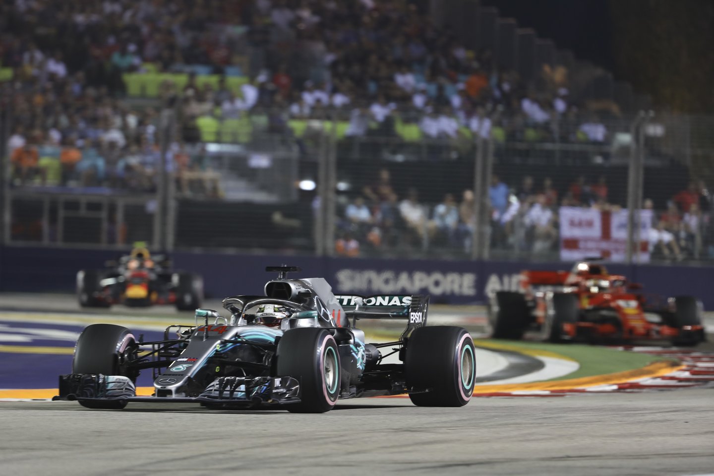 Antrąją vietą Singapūro „Grand Prix“ užėmė „Red Bull“ atstovas Maxas Verstappenas. Ketvirtas finišo liniją kirto L.Hamiltono komandos draugas Valtteri Bottas, o penktas – dar vienas „Ferrari“ lenktynininkas Kimi Raikkonenas.