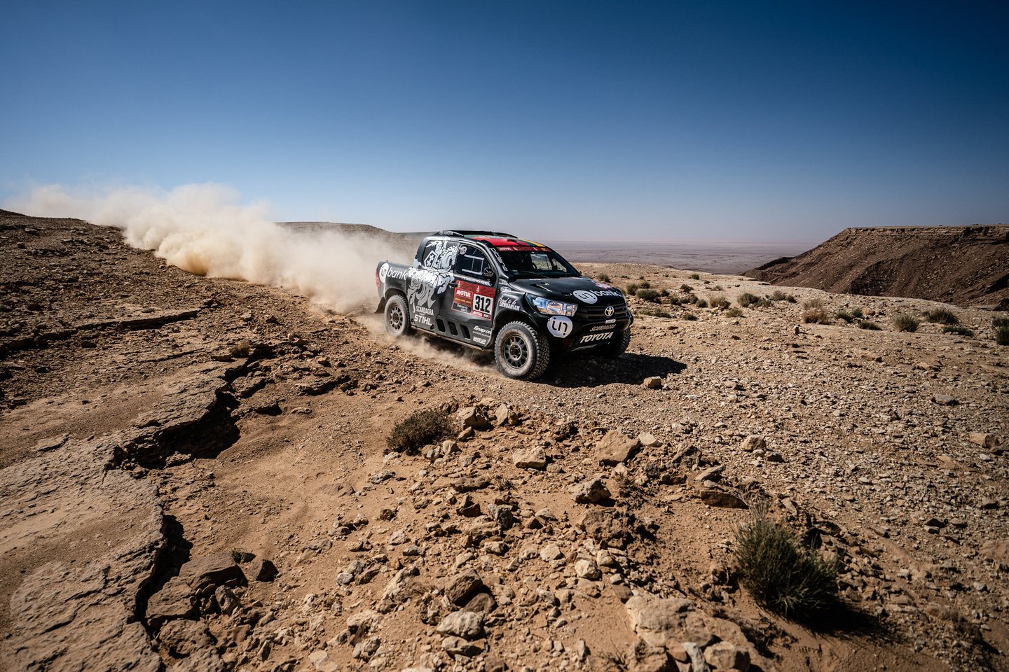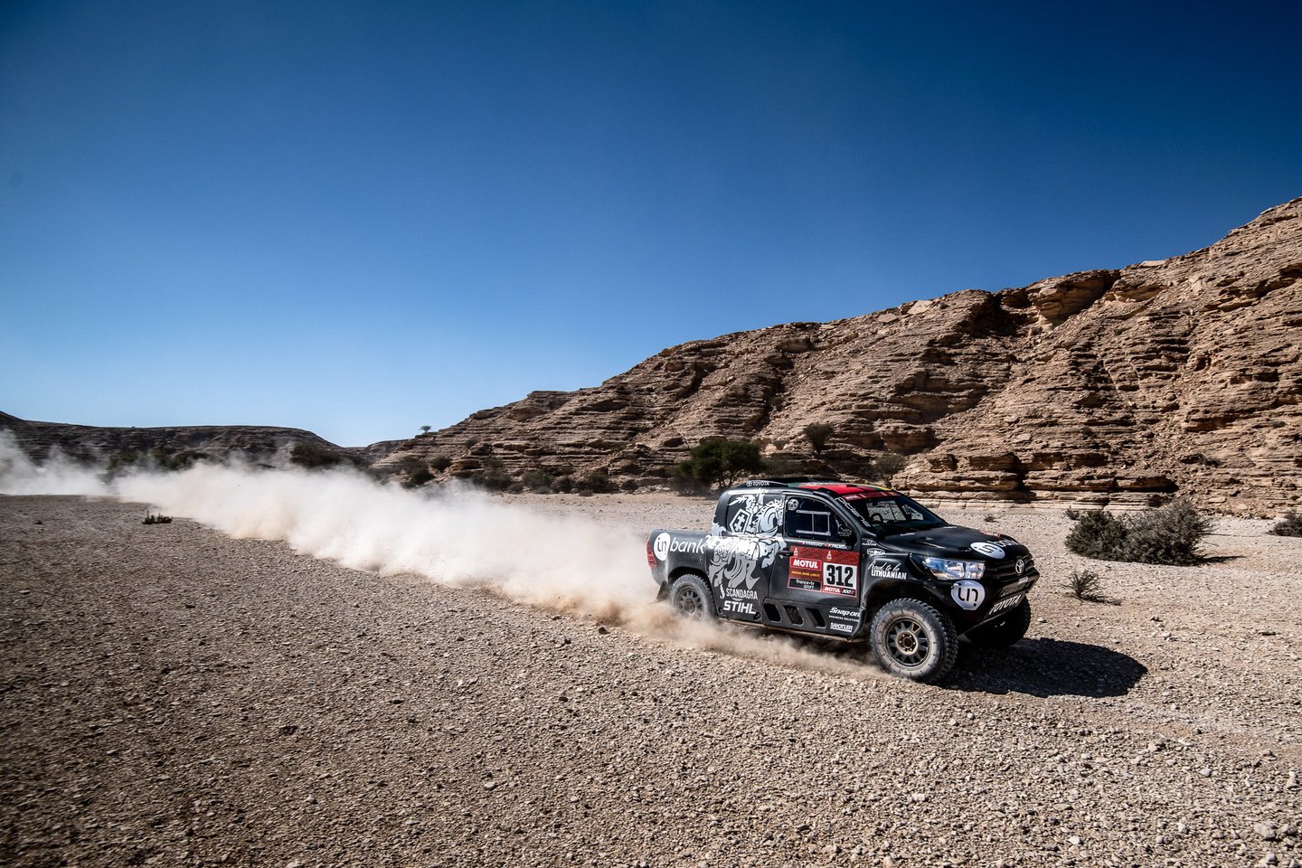 Turėjome didžiausią „op“ per Dakarą. Kažkaip neįvertinau kliūties ant kelio, tai „Toyota Hilux“ tapo kaip kamuolys, kokius 4 kartus pašoko kaip pasibaidęs žirgas.