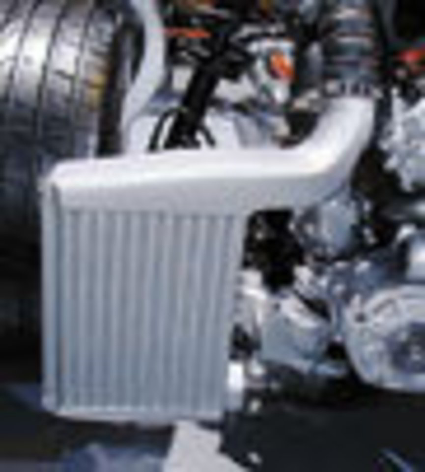 Priekinės pakabos mazgas ir galinė pakaba. Amortizacijos sistemos pagrindą sudaro elektrinės hidraulinės konstrukcijos reguliavimo sistemos kasetė. Apačioje – vienas iš dviejų oro srauto aušintuvų, montuojamų priešais priekinius ratus, ir viena iš dviejų turbinų. Maksimalus slėgis – 0,7 bar: jo pakanka pasiekti 580 AG galiai. 5,2 l variklio su įsiurbimu didžiausia galia – 435 AG.