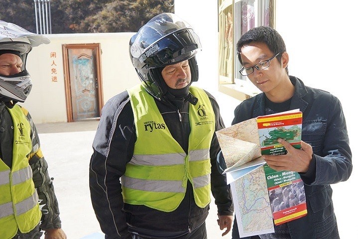 „Ryte radome apšarmojusius motociklus. Sigito termometras rodo minus du. Bet saulė kyla ir oras šiltėja. Juk čia Tibeto kalnai – aukštis virš trijų tūkstančių metrų. Ir nors esam kalnuose jau ketvirta diena, kvėpuoti vis dar sunku.