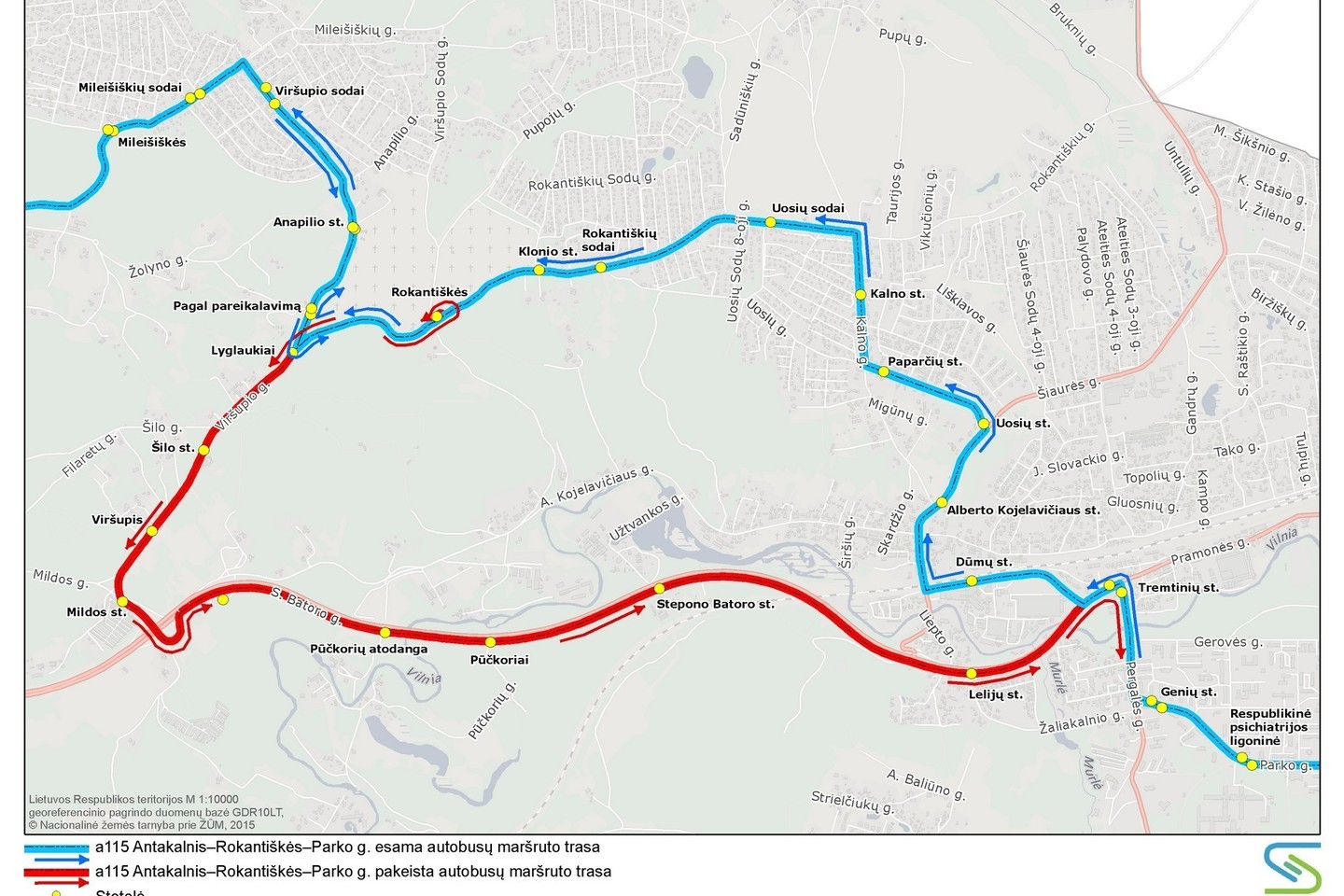 Autobusai, važiuojantys link Naujosios Vilnios, apsisuks stotelėje „Rokantiškės“ ir važiuos apylanka Viršupio, Mildos, S. Batoro gatvėmis, toliau – senąja trasa, sustodami stotelėse „Lyglaukiai“, „Šilo“, „Viršupis“, „Mildos“, „Pūčkorių atodanga“, „Pūčkoriai“, „Stepono Batoro“, „Lelijų“.
