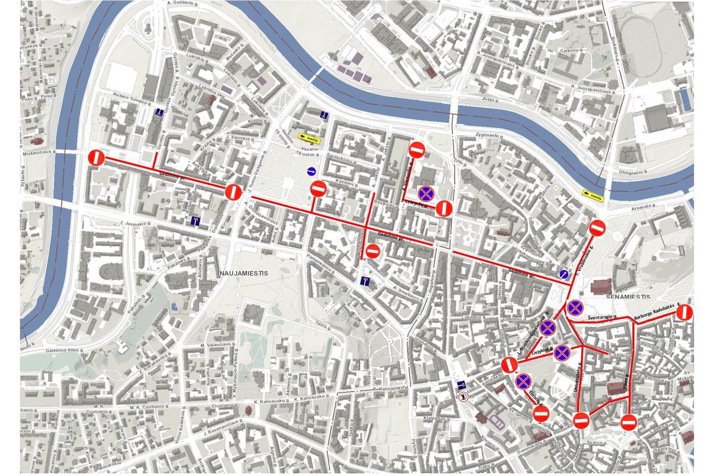 Benediktinų gatvėje ir Totorių gatvės dalyje nuo Šv. Ignoto iki Liejyklos gatvės transporto priemonės važiuoti taip pat negalės, išskyrus renginių dalyvių transportą.