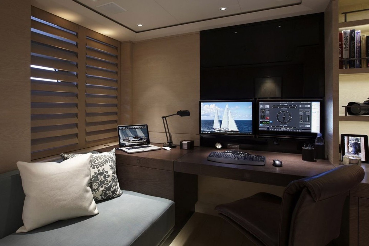 Viduje viskas įrengta laikantis aukščiausių kokybės standartų ir atrodo šiuolaikiškai. Įrengtas nedidelis biuras su bevieliu internetu, taigi jachtos svečiai įspūdingomis saulėlydžių nuotraukomis gali dalintis per savo „Instagram“ paskyras.