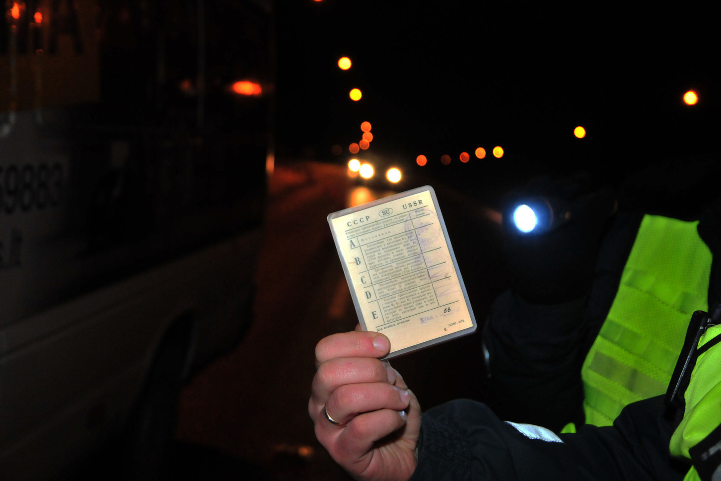 Paprašytas pateikti vairuotojo pažymėjimą, vyras ištiesė raidėmis SSRS papuoštą laminuotą lapelį. Pasak pareigūnų, sovietiniais laikais išduotus vairuotojo pažymėjimus jau seniausiai reikėjo pasikeisti į dabar galiojančius.