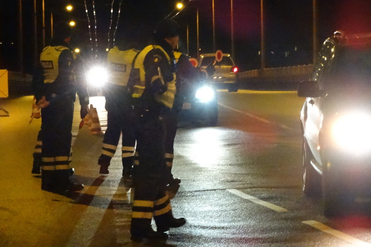 Apie 18 valandą 30 minučių trys iš sostinės atvykę pareigūnų ekipažai įsitaisė prie pagrindinio įvažiavimo į Jonavą, iškart už tilto per Nerį.