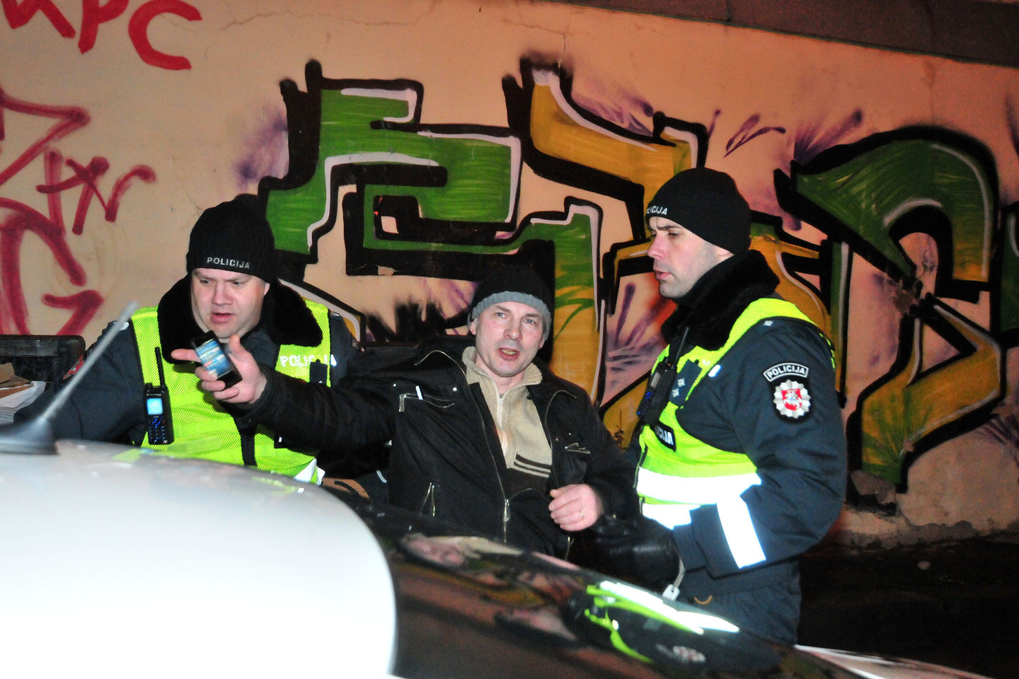 Pirmasis girtas vairuotojas įkliuvo pareigūnams dar vykstant į reido vietą. Prieš pat 23 val. greta Vilniaus geležinkelio stoties esančioje Seinų g. pareigūnai pastebėjo be šviesų važiuojantį automobilį „Renault“, kuriame sėdėjo du vaikinai.